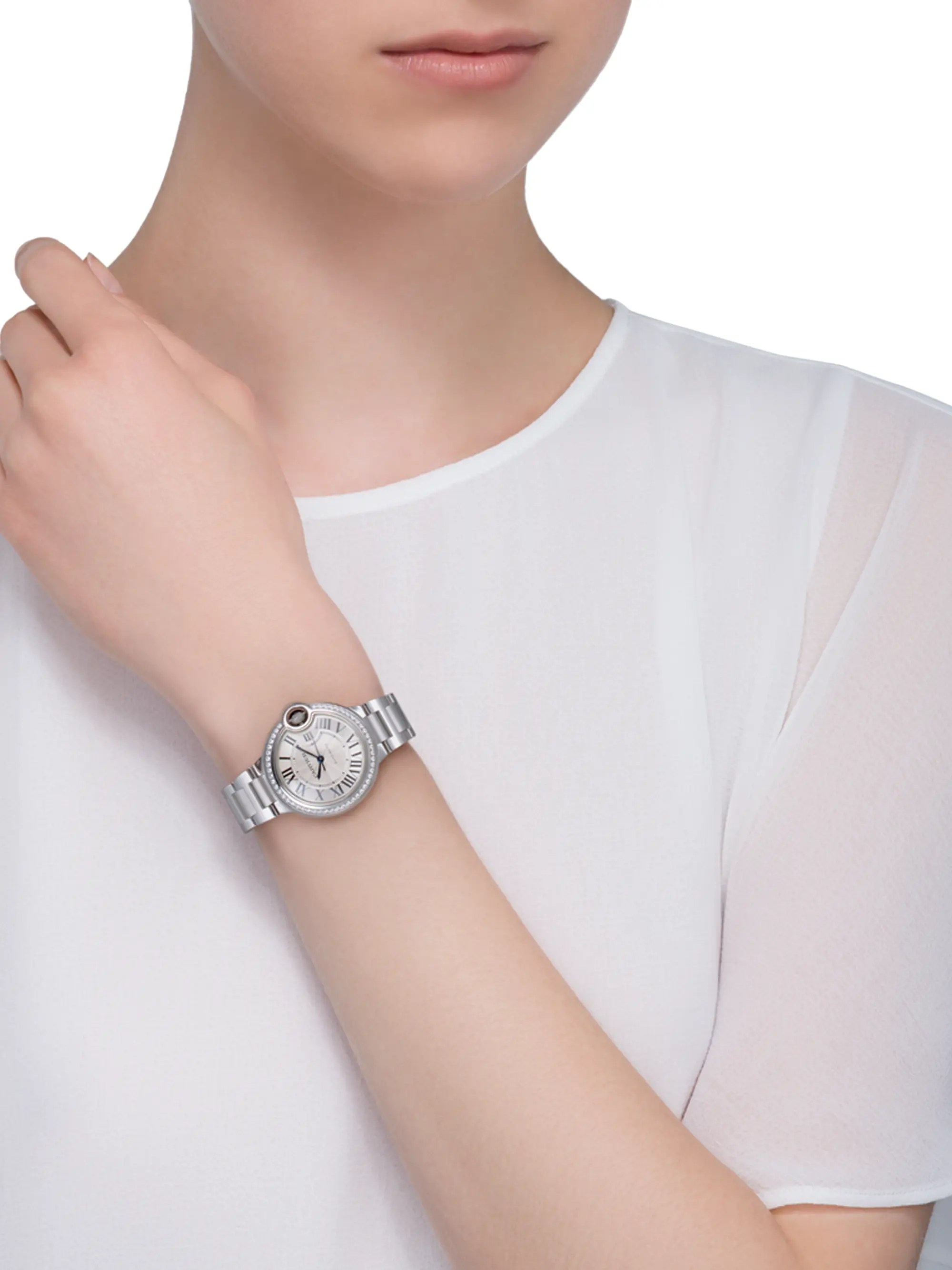 Ballon bleu de cartier watch.. Lacquered silvered guilloché opaline dial. Ballon bleu de cartier watch: Ballon bleu de cartier watch, 33 mm, mechanical movement with automatic winding. The contemporary nature of the cartier ballon bleu 33mm is conferred through its name. Ballon bleu de cartier watch, 33 mm, mechanical movement with automatic winding. Ballon bleu de cartier watch, 33 mm, mechanical movement with automatic winding.. Ballon bleu de cartier watch, 33 mm, mechanical movement with automatic winding.